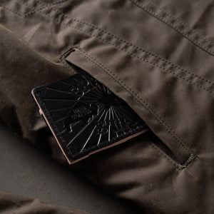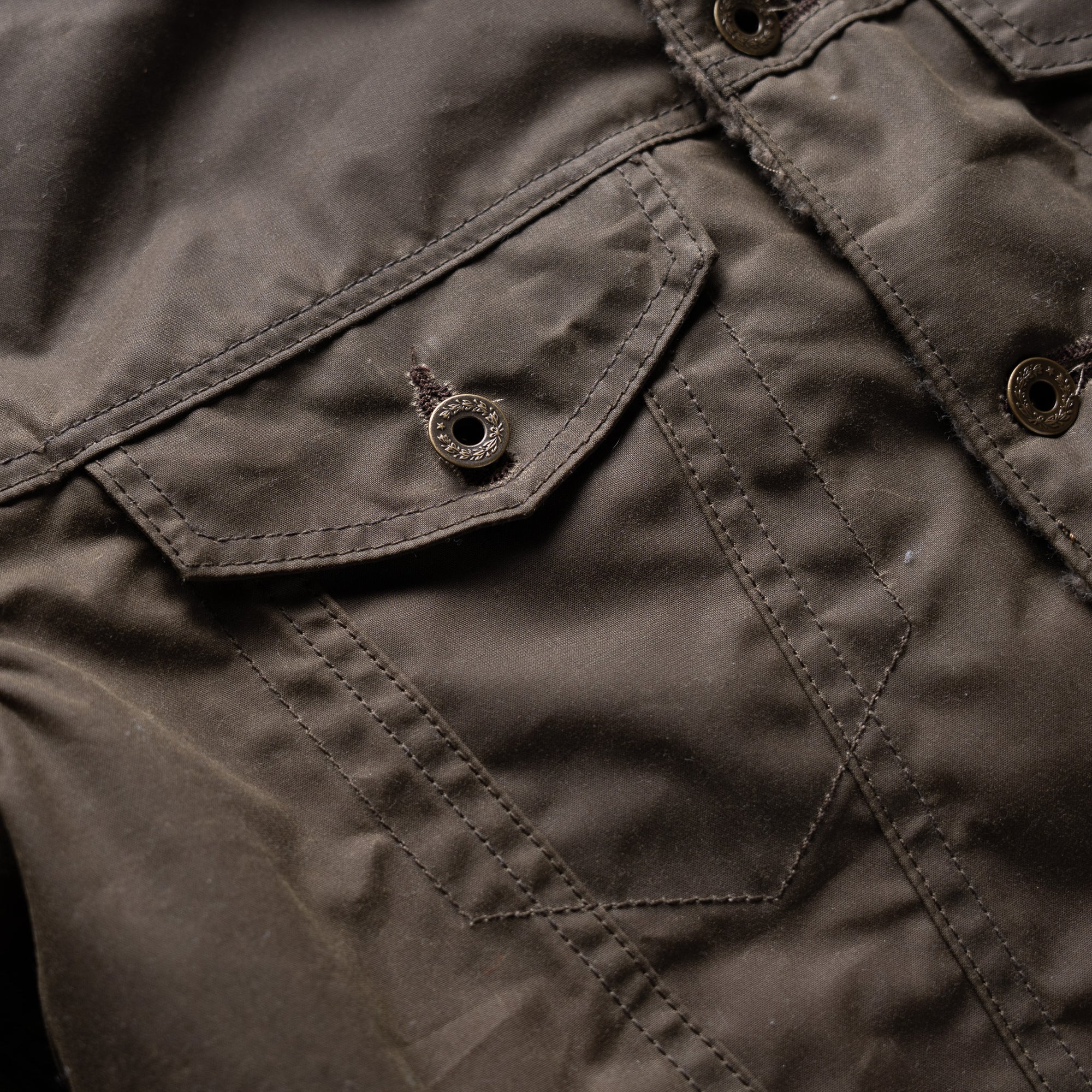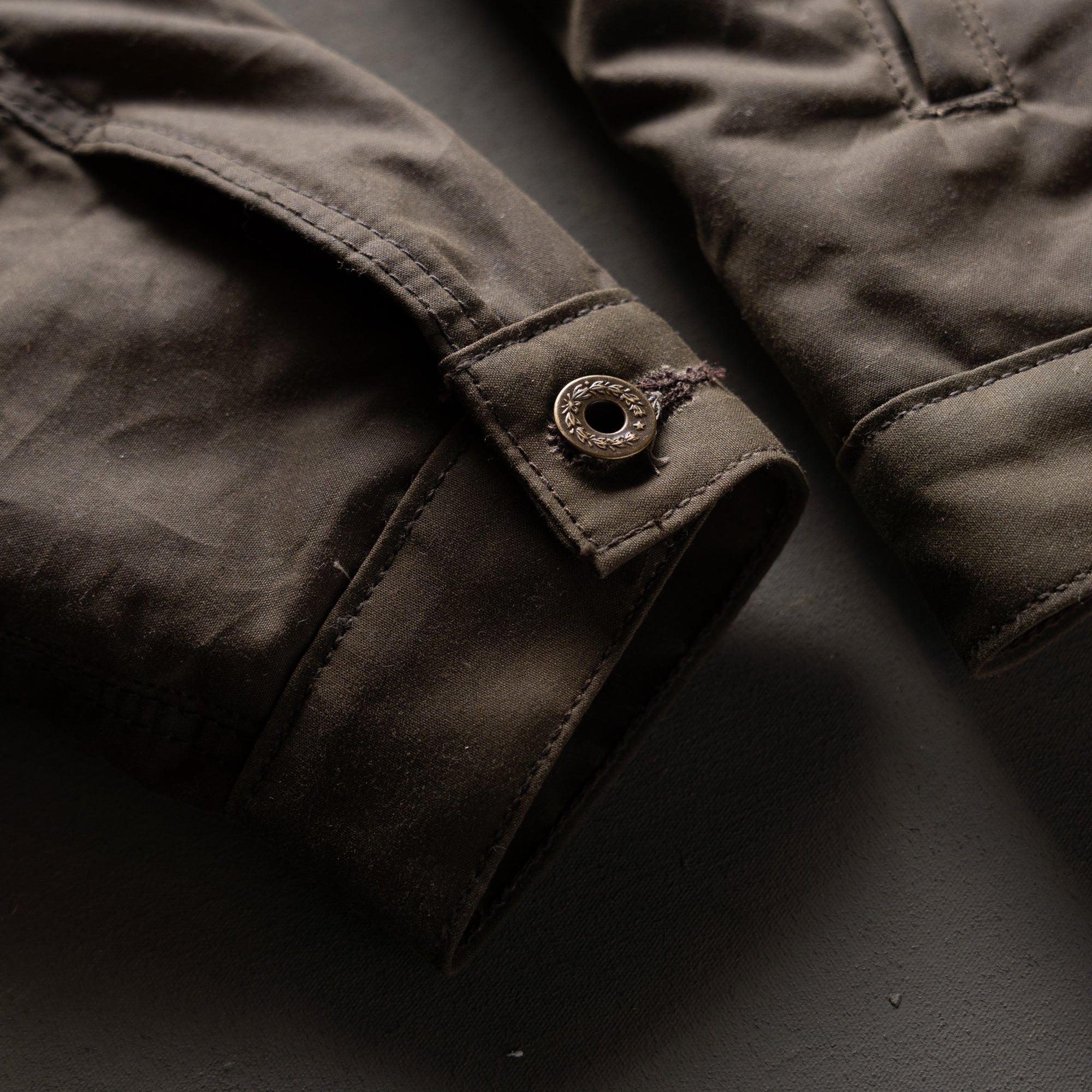 Cut from 9oz British Millerain dry waxed cotton, an updated formula that sheds wind and light rain without the wet hand feel of traditional wax. Lightweight, breathable, and built to break in, not break down.