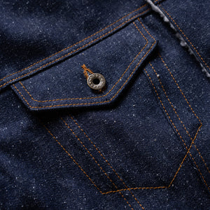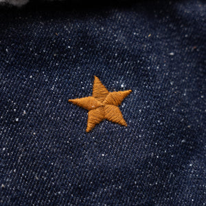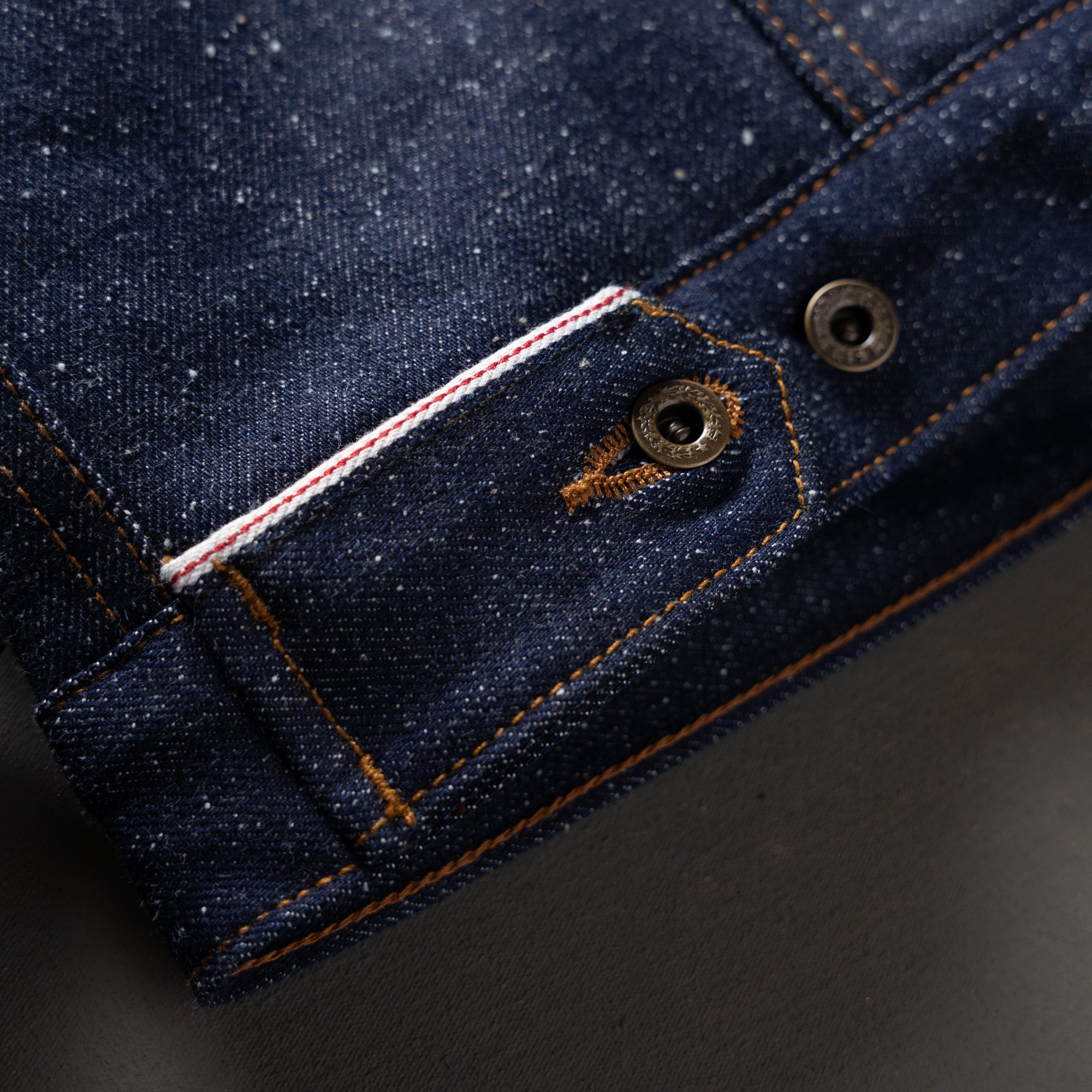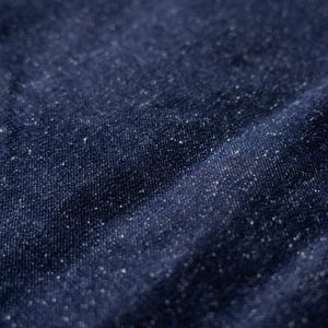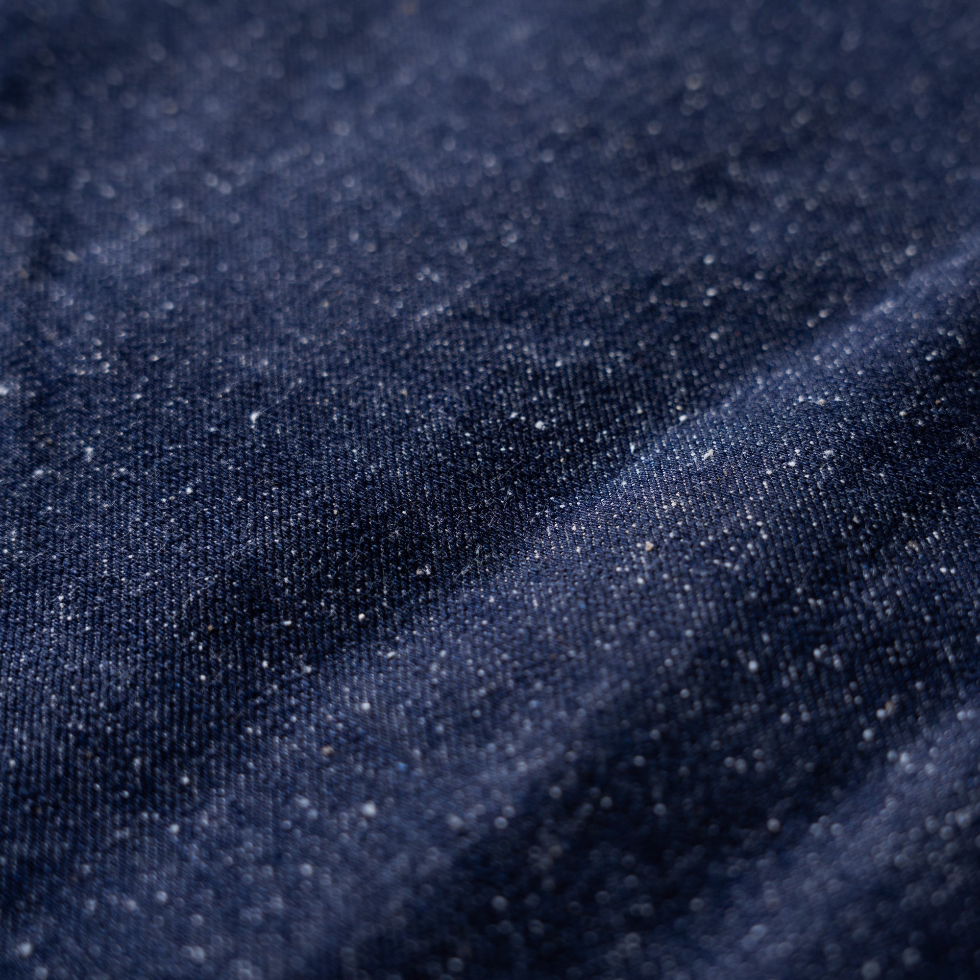 Our mission at Brave Star is to constantly seek out unique weaves and dye processes made in small batch runs.The selvage denims we gravitate toward emphasize the beauty and color spectrum of rope dyed indigo. With Blizzard we take that one step further using a dense 'nep' yarn in the weave. The white neps are the result of the ginning and carding process where the amount of mechanical neps are controlled. We've also used a soft hand yarn known as pearl yarn that is excellent for dye uptake and is a pleasure to wear due to the comfort and feel against the skin. An exceptional and unique selvage denim that is rarely seen Stateside.