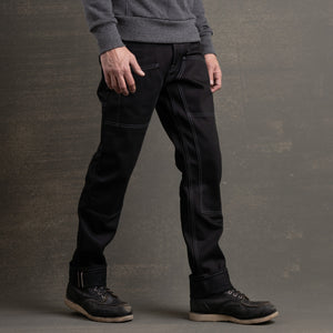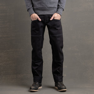 PRE ORDER: Die Hard Double Knee Straight Leg 14oz 'Onyx' Double Black/Contrast Grey Stitch
