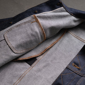 The Shogun is a rare beast, a 14.5oz selvage power stretch denim from Japan’s Kaihara Mills. At first touch, it wears like a classic heavyweight 100% cotton: dense, structured, and substantial. But hidden in the warp is just enough stretch to add serious comfort without sacrificing integrity.