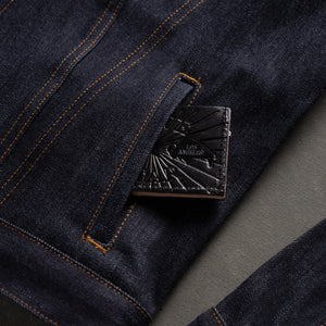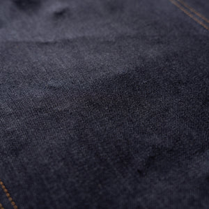 Woven from a hefty 18oz selvedge, the Samurai is forged for those who respect and admire the indigo process. What sets this fabric apart is the deep, dark indigo—achieved through a tall dye range that allows the yarns to oxidize longer between dips. That oxidation time is where the magic happens. The longer the indigo has to breathe, the richer and more saturated the color becomes. No shortcuts, just chemistry and patience.