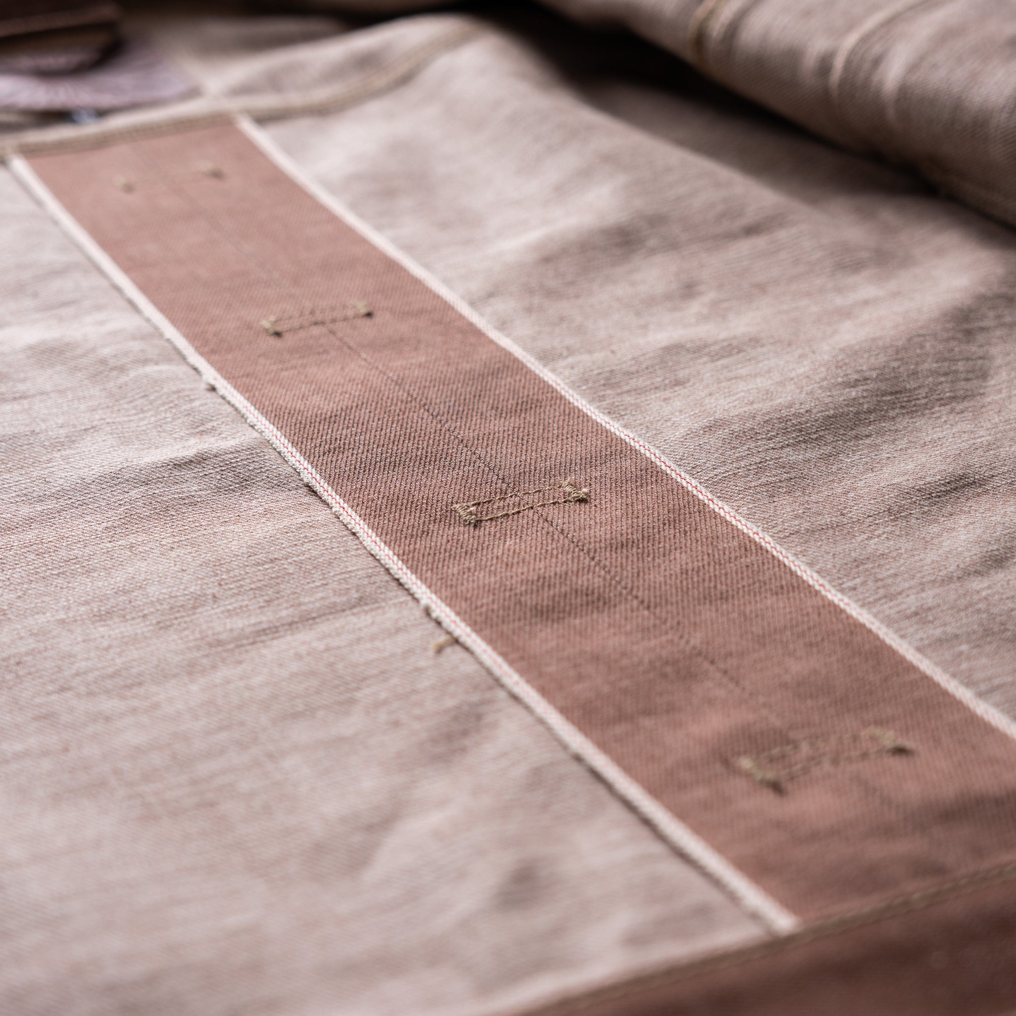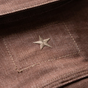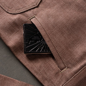 Cut from rare beet-dyed Japanese selvage denim, this fabric blends heritage craft with natural beauty. The earthy red cast comes from real beetroot dye, a nod to old-world methods rarely seen in modern denim. Woven slowly on vintage shuttle looms, each yard carries subtle variations in tone—no two pairs are exactly alike. Built for those who value authenticity and time honored production methods, this is denim that draws from the past while breaking in beautifully over time.