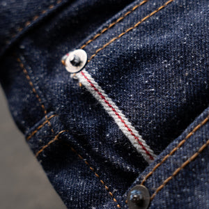 At 15 ounces, this is mid-heavyweight denim with a bold handfeel and solid drape. The yarns carry natural imperfections that create a snowy, almost wool-like surface from afar. Up close, it’s chaos in the best way that only a denim head can fully appreciate.