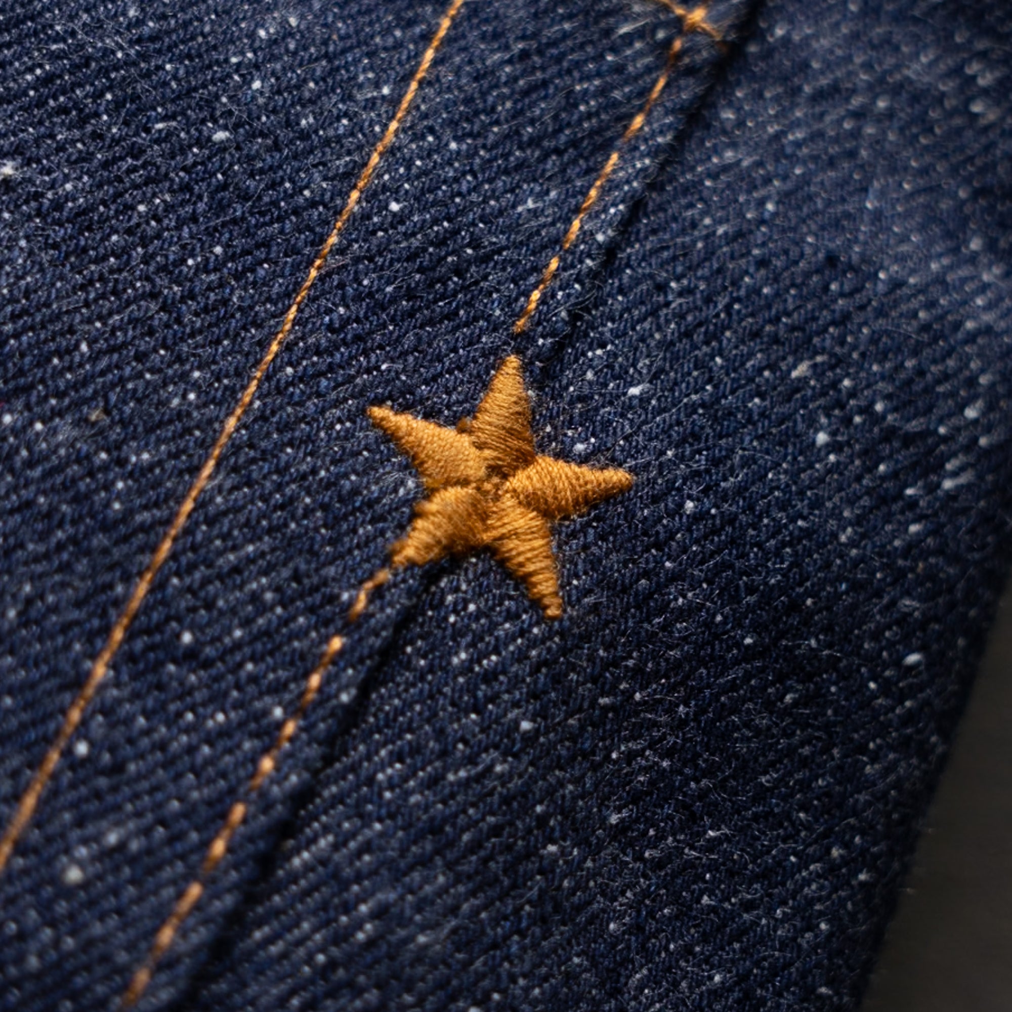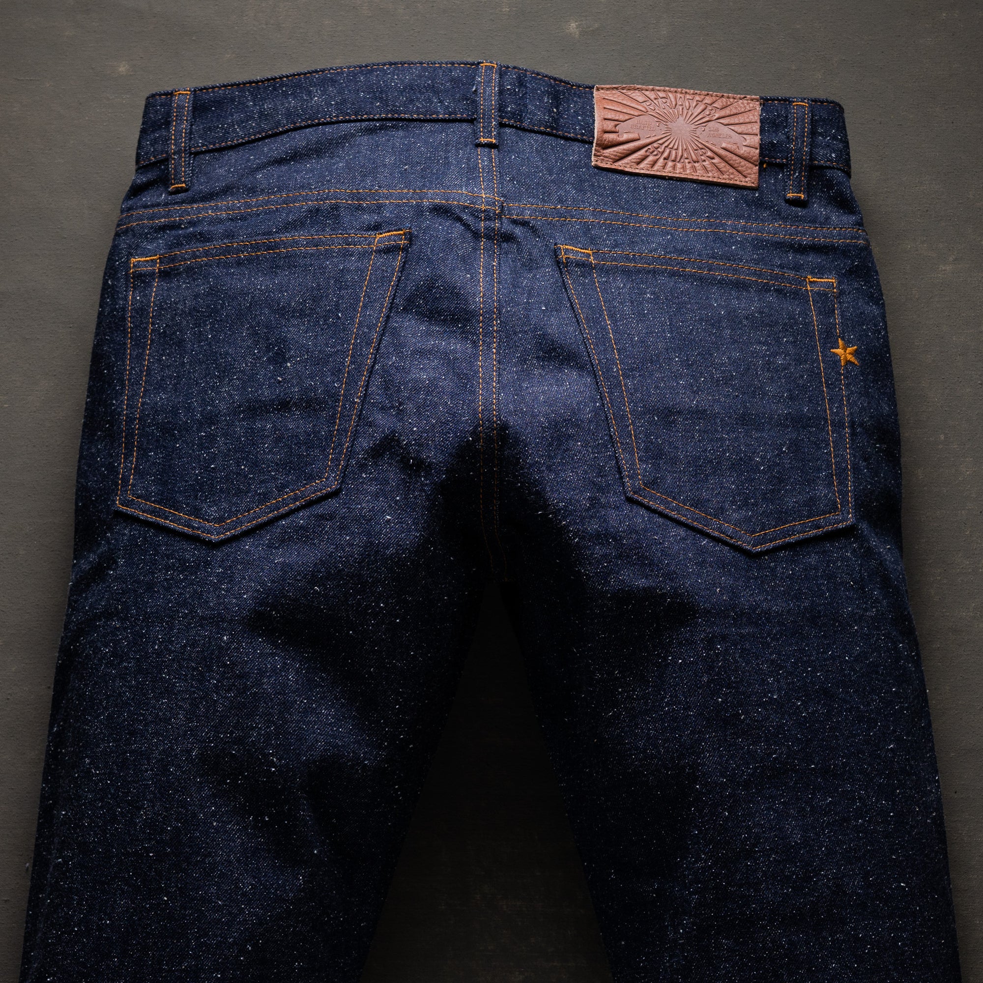 Dark Gauntlet is cut from a 21.5oz right-hand twill with a darker, meaner indigo tone than our LHT version. Woven from long-staple cotton for serious strength without the break-in brutality. It wears tough but feels surprisingly supple from day one. Expect sharp, high-contrast fades across whiskers, combs, and stress points. Red selvage ID. Cut and sewn in Los Angeles.
