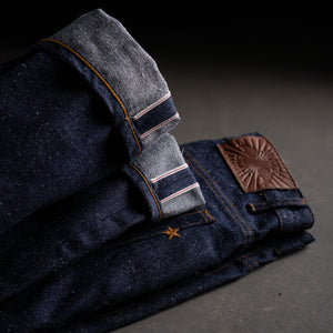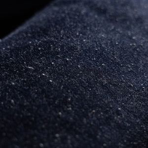 This one’s for the denim purists. The 15oz nep (Blizzard) selvage is a deep indigo, right-hand twill woven with a heavy dose of texture and irregularity. Thick tufts of cotton poke through the face of the fabric, that’s the nep. It’s not a flaw. It’s a feature. It comes from manipulating the cotton during the ginning and carding processes as well as low-tension weaving with slubby, short-staple yarns with no two yards ever exactly alike.