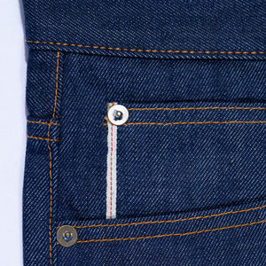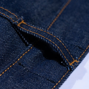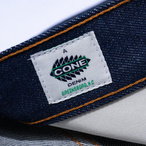 A 100% cotton ring RHT (right hand twill) that weighs in at a solid 14oz. The indigo shade has a classic 'work wear' aesthetic that Cone pioneered and perfected over their 132 year history. The selvage iD is red which became known as 'red line' selvage and was synonymous with the 501® for decades even though the iconic 'red line' selvage wasn't actually introduced until 1927 - 12 years after the famous 'Golden Handshake' and was adopted by Cone specifically to differentiate one company's denim from another.