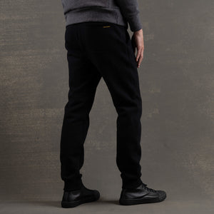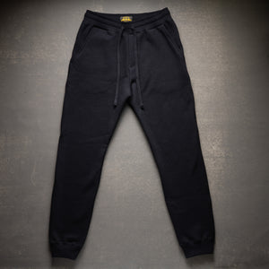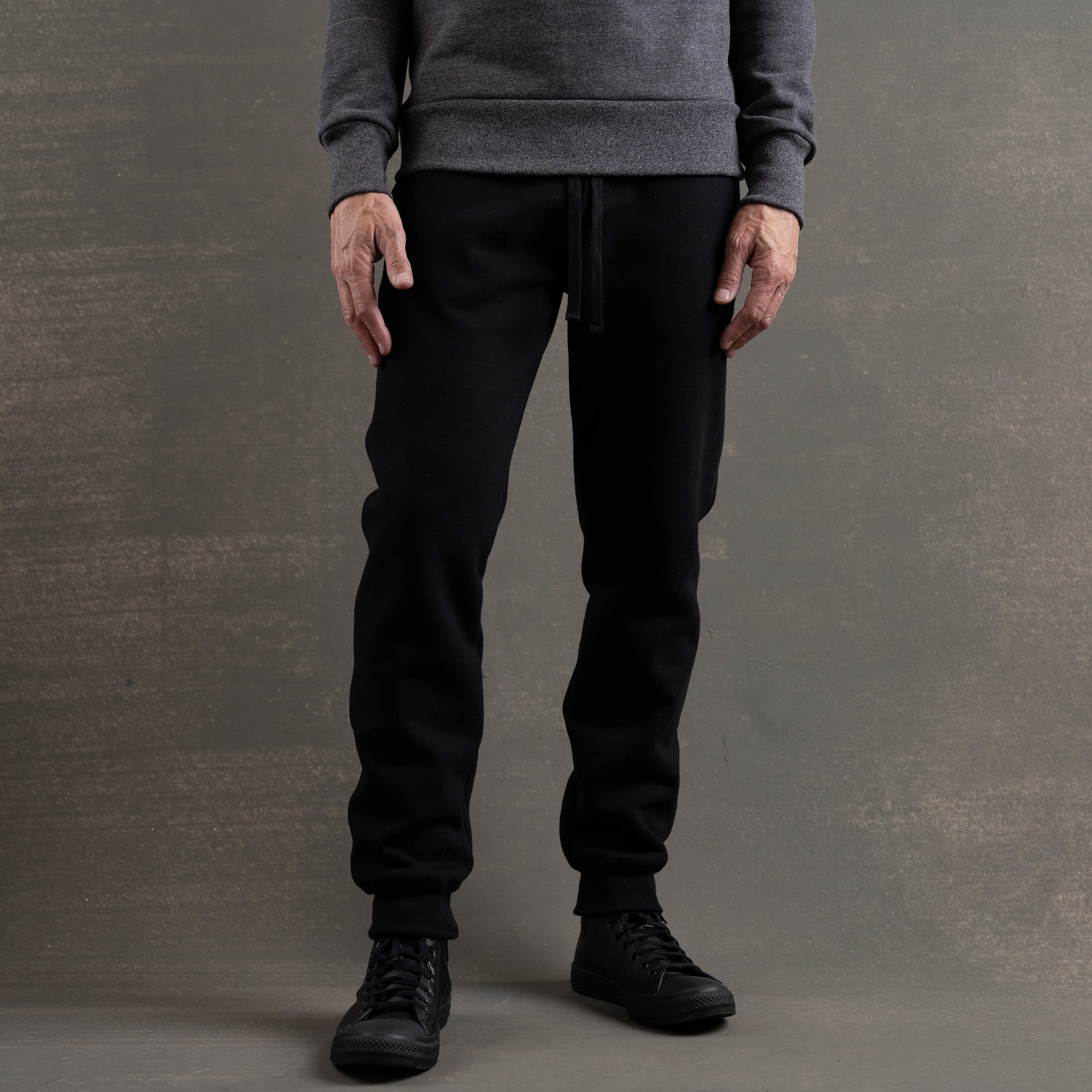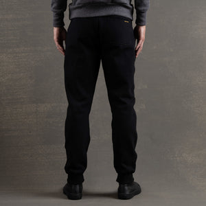 These Sumo sweatpants are made from an ultra-heavy 500gsm 100% cotton brushed fleece—dense, unyielding, and made to outlast. The rich black tone is yarn-dyed using reactive dyes that will soften and fade with time, developing a broken-in character that reflects the miles you’ve put in. While the inside is brushed for comfort, this fleece is all about structure, weight, and serious durability. Finished with a matching 2x1 rib at the waistband and cuffs for reinforcement where it counts. Whether you're putting in work or putting in miles, these are sweats that stay the course.