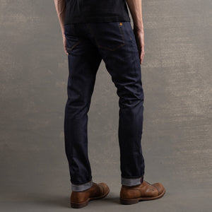 Red Sun 9oz selvage denim is light, breathable, and built for movement but still carries the soul of raw denim. Shuttle loom woven, it features mercerized yarns that give the surface a smooth hand and a deep, lustrous indigo tone.