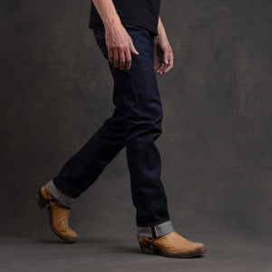 Mojave western cut is our newest fit inspired by the classic mid 50’s to mid 60’s silhouettes that became popular due to the widespread adoption of cowboy culture that permeated jeans wear during that particular era. The Mojave has a subtle knee to hem gradation that is sufficient to accompany any cowboy or work boot. This is a classic American Western silhouette that has long been neglected but whose time has come once more.