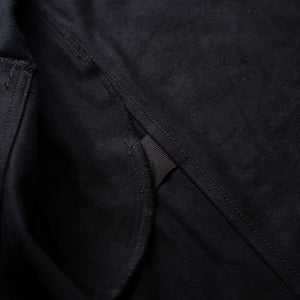 Sulphur-dyed black on both warp and weft, this double black selvage delivers depth with attitude and a dense, shadow-toned surface. The warp carries just enough slub to create a dry, tactile grain that gives the fabric dimension and grit. Over time, those yarns shift and soften unevenly, unlocking a raw, high-character feel. The reactive-dyed weft stays jet black, anchoring the fabric’s structure while the face does the heavy lifting—picking up the wear, character, and gradual tonal shifts that make it yours. Finished with a classic red selvage ID. This is black denim built with backbone.