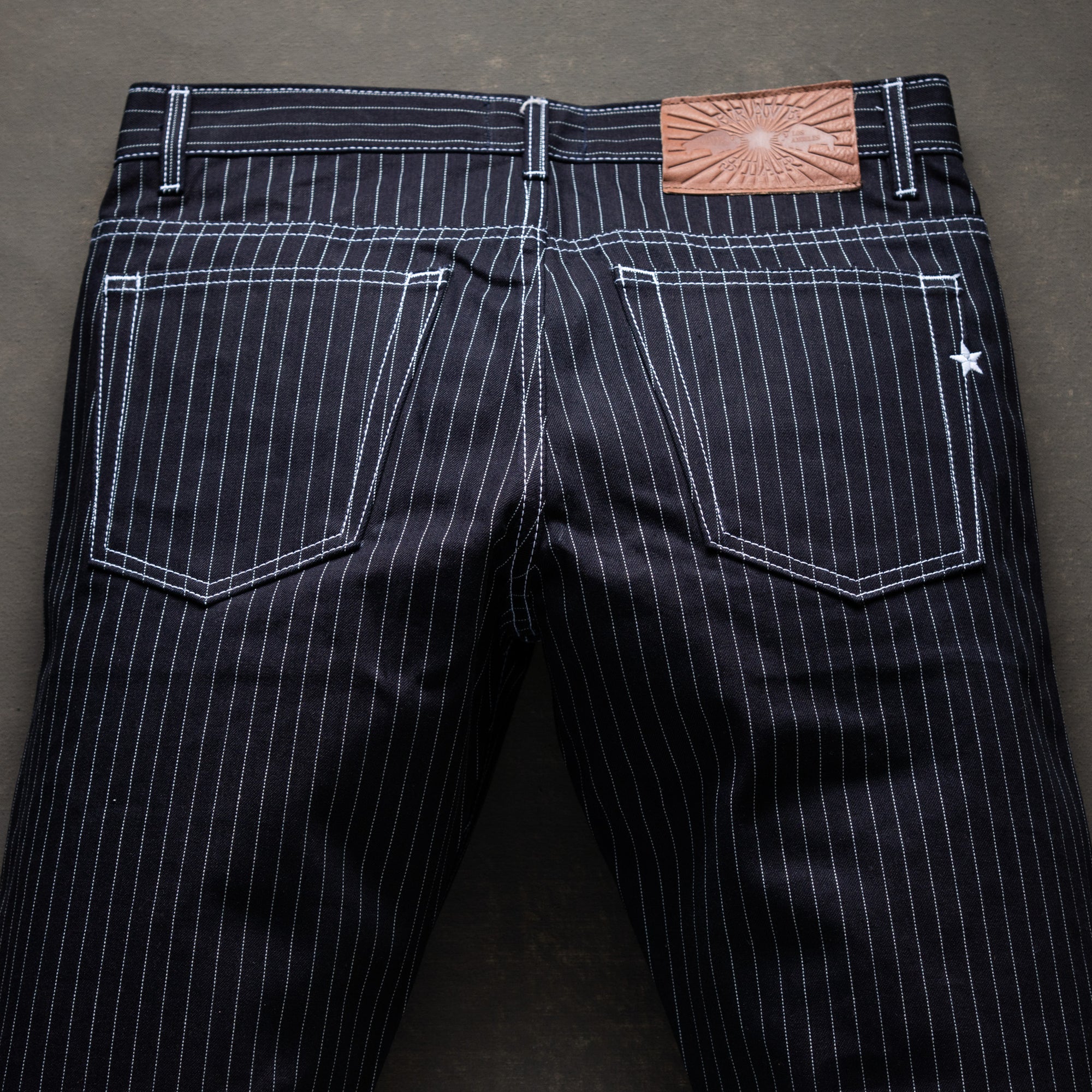 - Button fly with double prong, donut style buttons.