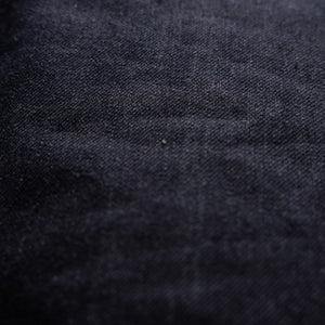 Woven from a hefty 18oz selvedge, the Samurai is forged for those who respect and admire the indigo process. What sets this fabric apart is the deep, dark indigo—achieved through a tall dye range that allows the yarns to oxidize longer between dips. That oxidation time is where the magic happens. The longer the indigo has to breathe, the richer and more saturated the color becomes. No shortcuts, just chemistry and patience.