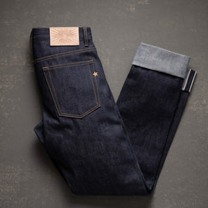 The True Straight fit is the gold standard of timeless American made heritage denim, embodying the classic silhouette that defined generations of American workwear and style. With its perfectly balanced straight-leg profile, it honors the integrity and durability that made the five-pocket jean an enduring icon. Every detail, from its riveted construction to its authentic selvage edge, speaks to a legacy of craftsmanship built to stand the test of time.