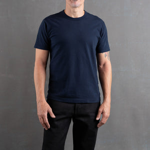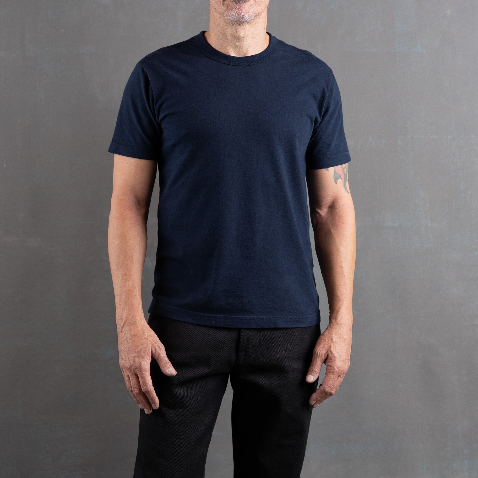 A standard fit, the pattern block utilizes side seams to contour the mid section for shape. The heavier cotton allows for a drape that is forgiving on the body. To preserve the fit, all of our fabric is washed before it's cut and sewn which allows for your T-shirt to fit right for as long as you own it, as there’s no additional shrinkage post wash.
