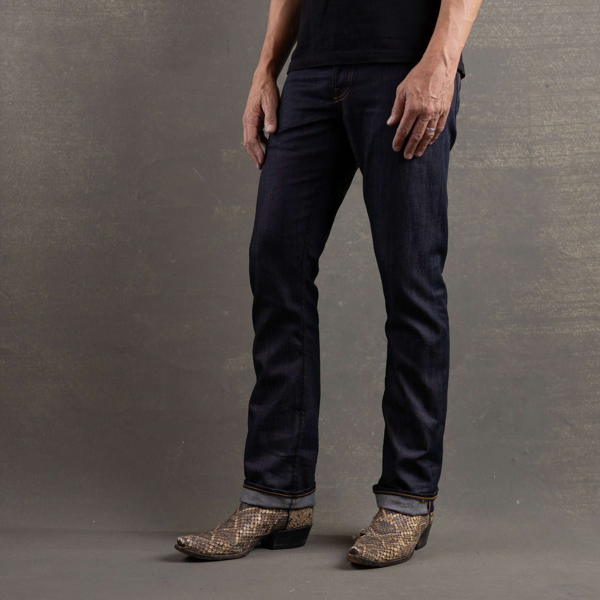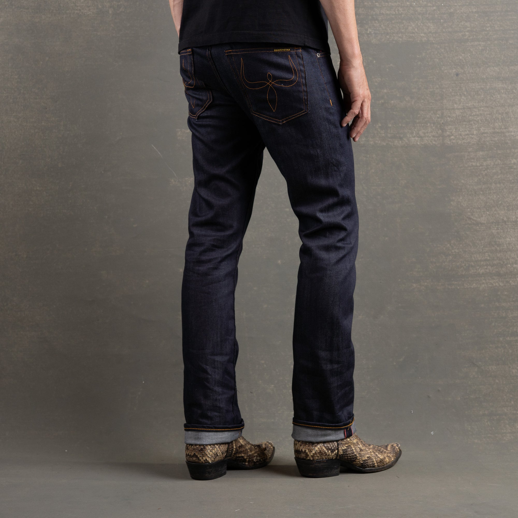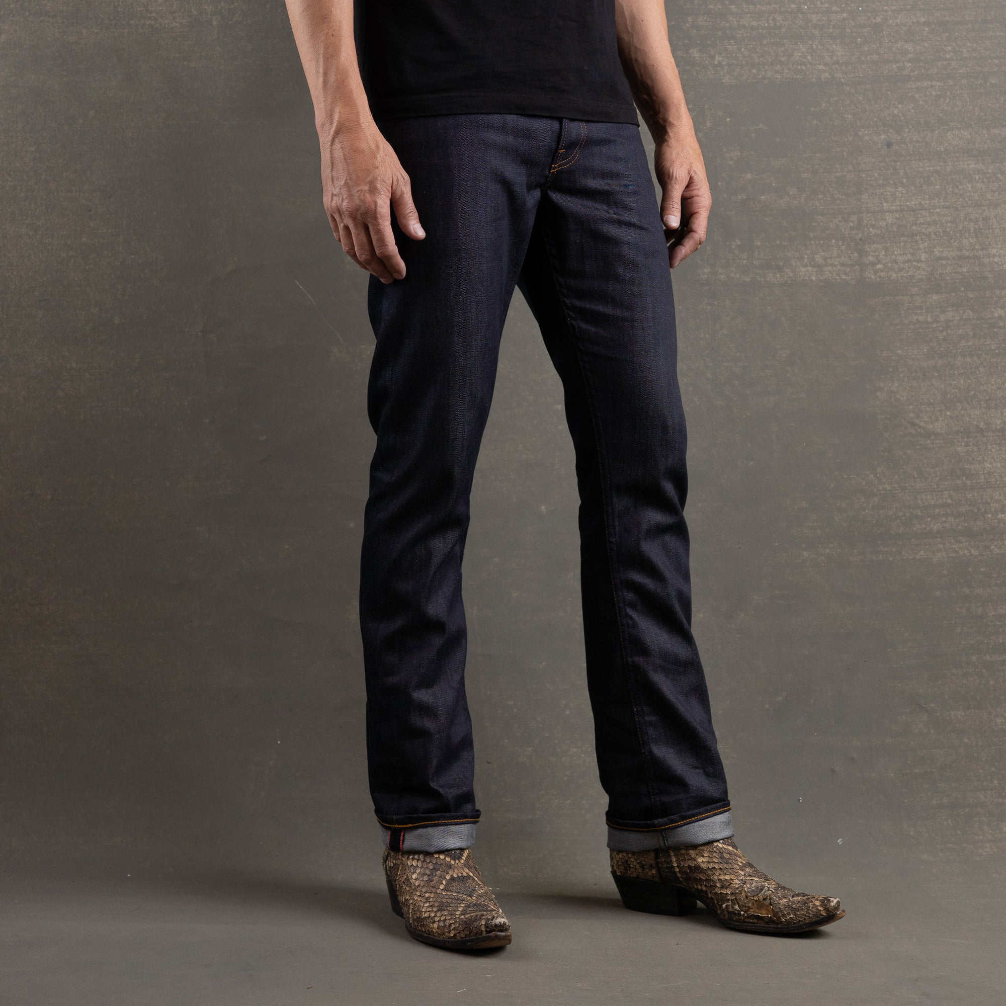 Mojave western cut is our newest fit inspired by the classic mid 50’s to mid 60’s silhouettes that became popular due to the widespread adoption of cowboy culture that permeated jeans wear during that particular era. The Mojave has a subtle knee to hem gradation that is sufficient to accompany any cowboy or work boot. This is a classic American Western silhouette that has long been neglected but whose time has come once more.