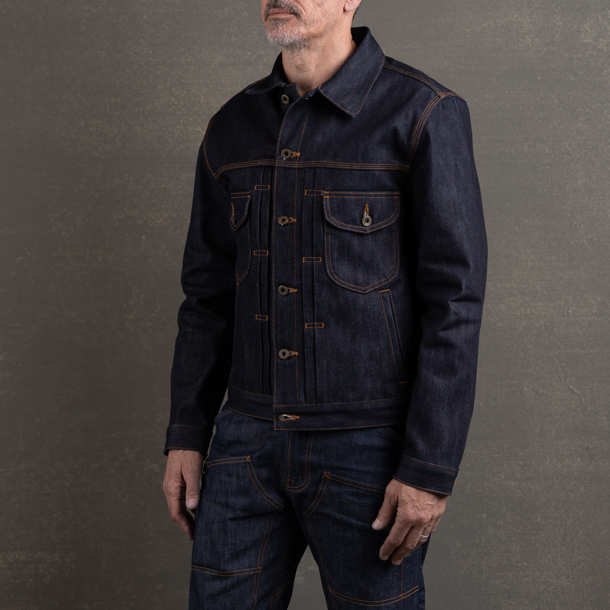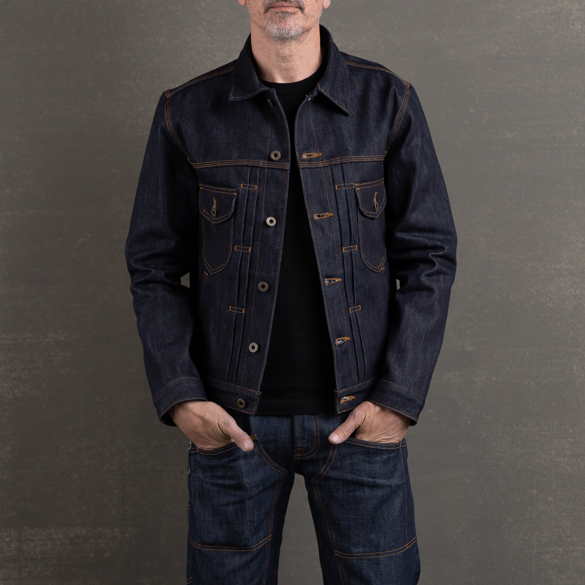 Our Mojave Jacket is a Type II reimagined, built for the long haul, kissed by the dust of desert highways and the neon hum of late-night diners. Riding on the original detailing of double front railroad pleats and dropped front chest pockets, we've added two front hand warmer pockets that take this jacket from cool to practical and cool. This is heritage stripped down, rebuilt, and ready for whatever the hell comes next.