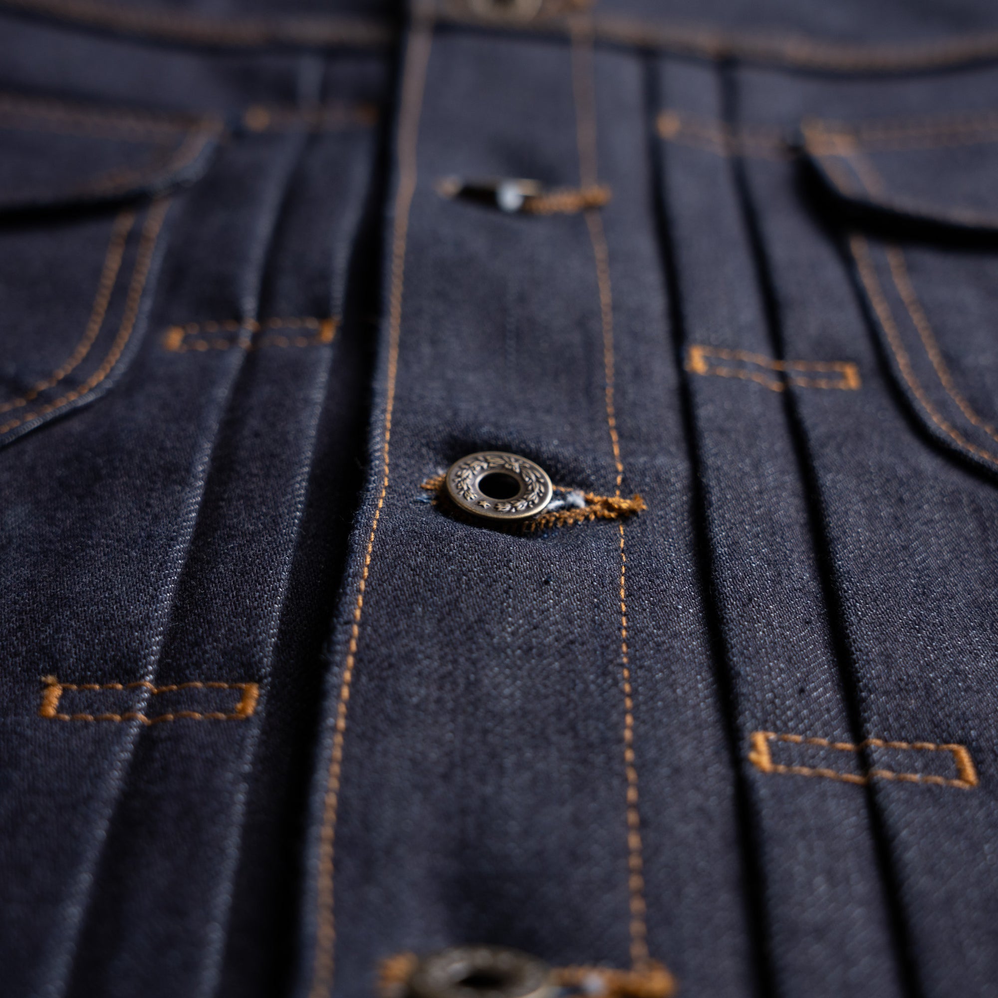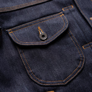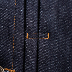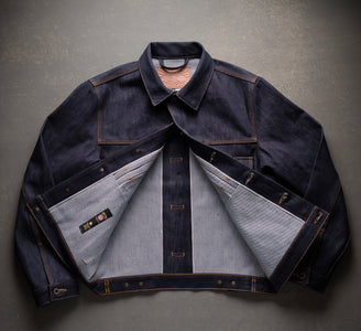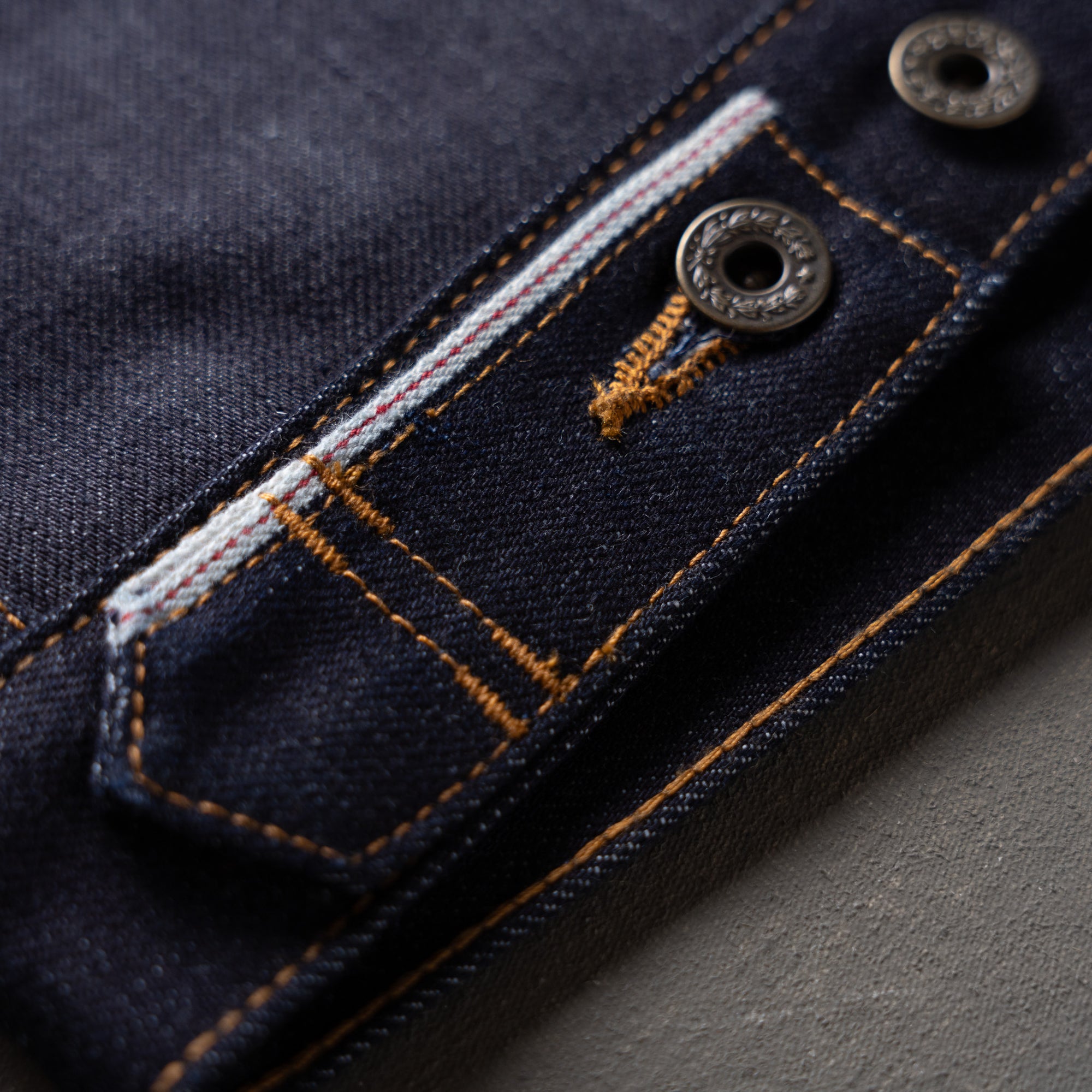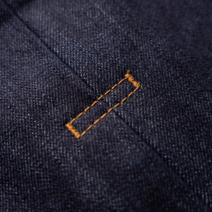 Woven from a hefty 18oz selvedge, the Samurai is forged for those who respect and admire the indigo process. What sets this fabric apart is the deep, dark indigo—achieved through a tall dye range that allows the yarns to oxidize longer between dips. That oxidation time is where the magic happens. The longer the indigo has to breathe, the richer and more saturated the color becomes. No shortcuts, just chemistry and patience.