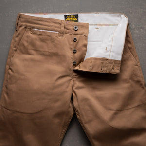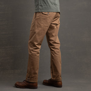 The Marshal Chino is a no-nonsense, straight-leg bruiser inspired by military grit and old-school workwear, but redefined with Brave Star’s signature fit. Cut from authentic selvage twill, a rarity in today’s market, these chinos are made to take a beating on the job or clean up nicely off the clock.
