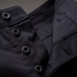 - Button Fly - We decided to go with a two pronged metal shank button instead of the more traditional sew through button as we felt that the thread eventually gets compromised with wear which causes the button to become loose and possibly fall off. The 2-prong advantage means a more secure attachment that prevents button rotation, and avoids button "pull through" as well as years of integrity.