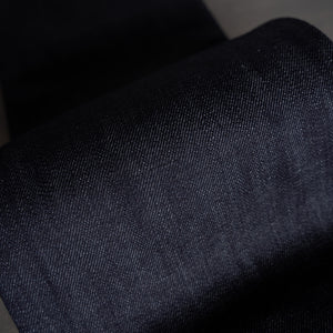 Woven with an uneven yarn that throws down bold texture in both the warp and weft, it’s got that raw, rugged character that only gets better with time. The highs and lows in the fabric will carve out a patina that tells your story, one fade at a time. At a solid 14oz, it’s got enough heft to feel substantial but won’t weigh you down—built for year-round wear. We finished it off with our signature red-orange stitching for that classic jeans wear edge and the iconic redline selvage ID, a mark only achievable on a vintage shuttle loom. No gimmicks, no shortcuts—just damn good denim.