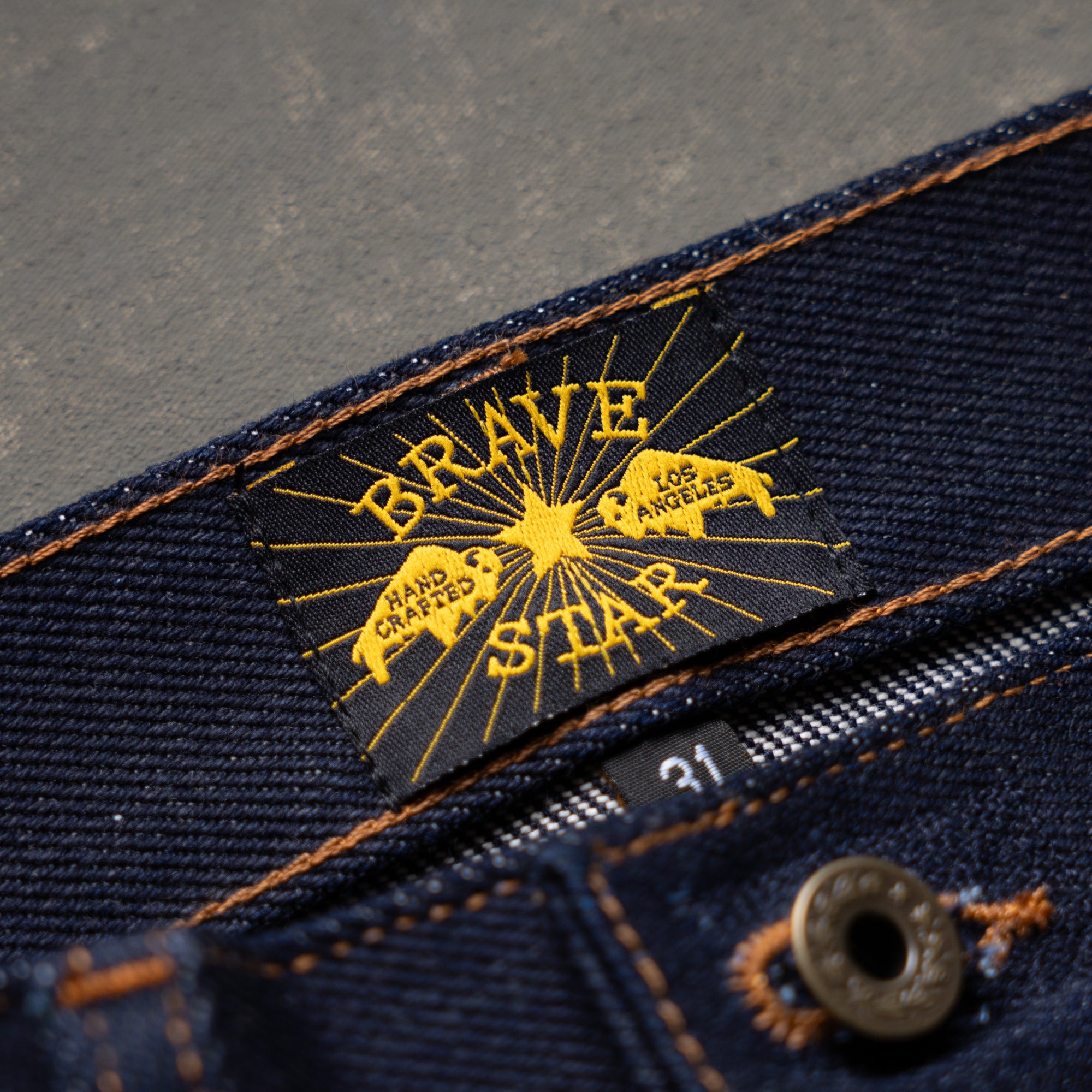 - Button fly with double prong, donut style buttons. Old style pocket rivet burrs.