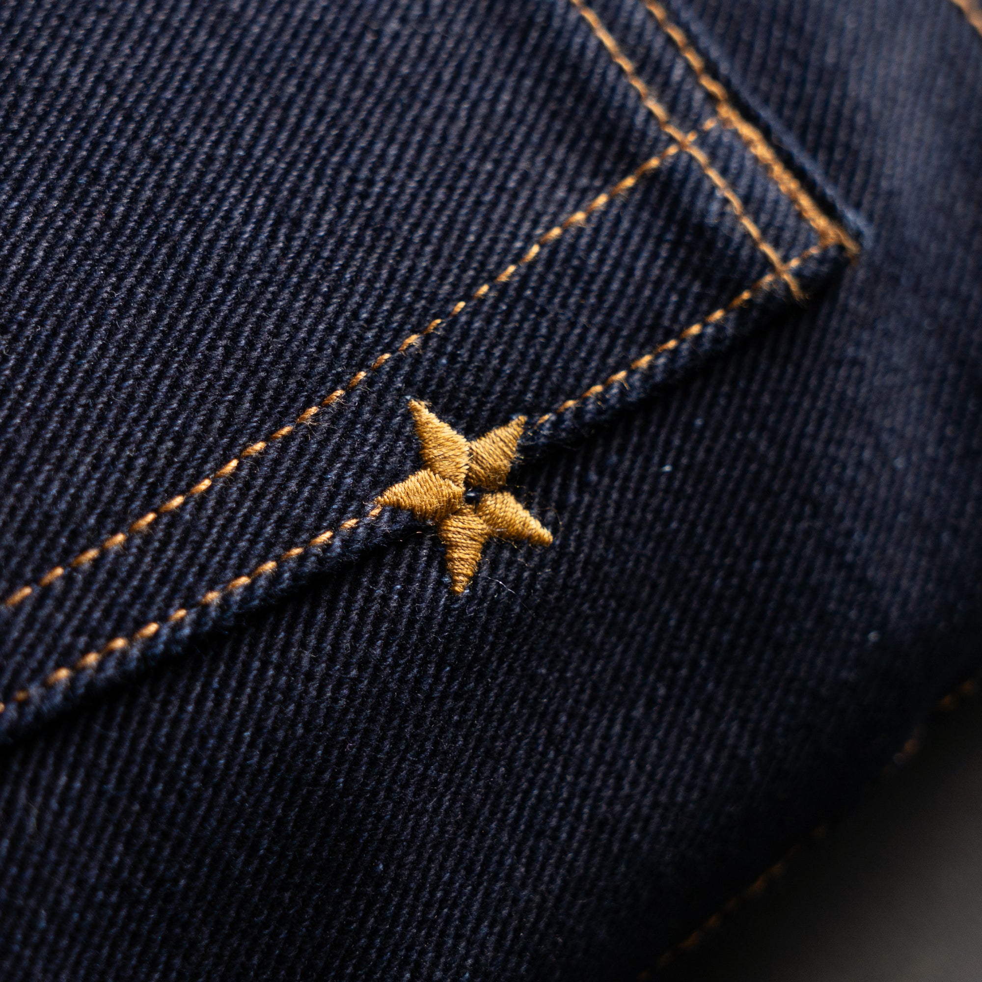 - Embroidered star insignia on the right back pocket represents ‘Made in America’ status.