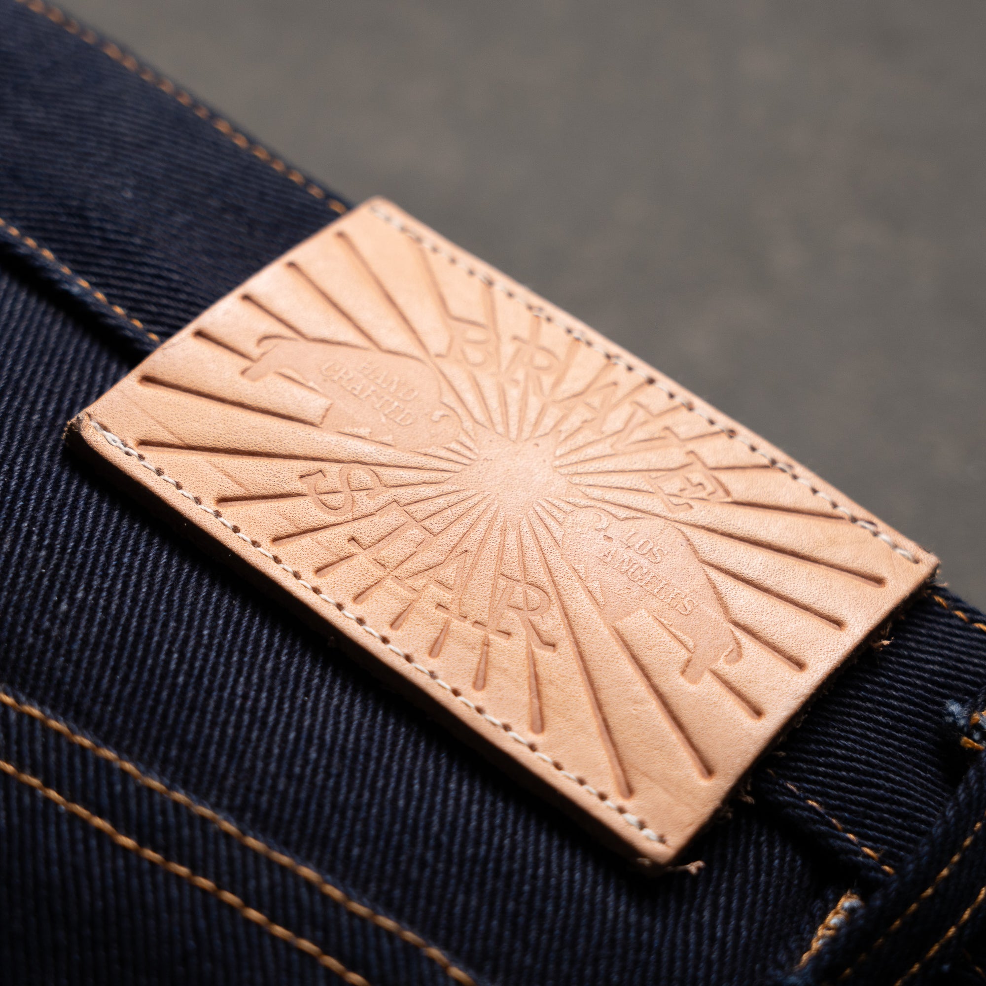- Leather back patches are cut & stamped in Los Angeles & waistband label is woven locally in Los Angeles.