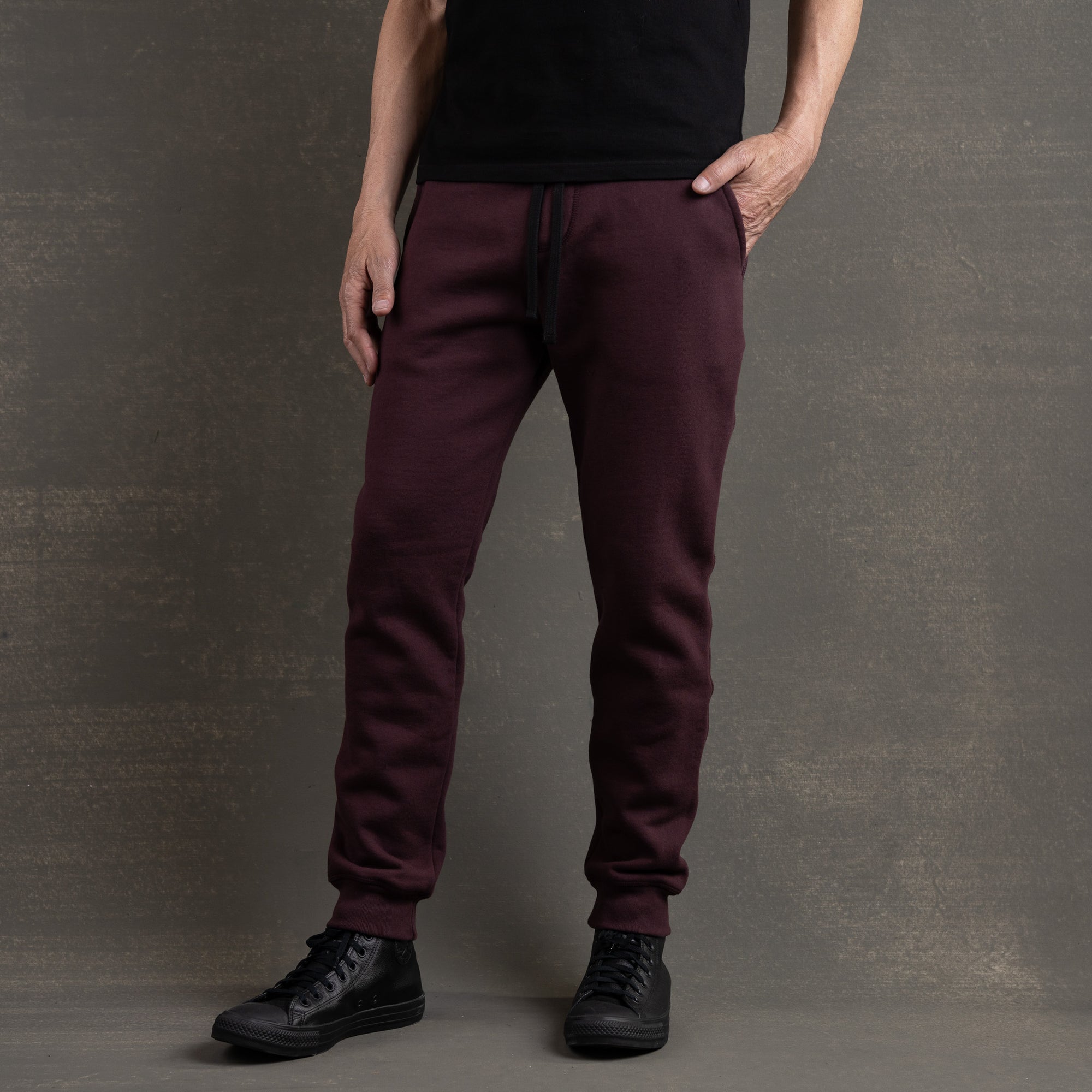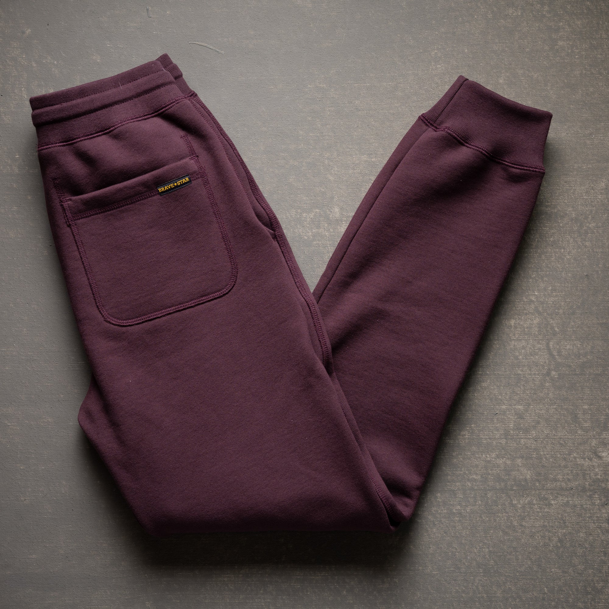 These Sumo sweatpants are made from an ultra-heavy 500gsm 100% cotton brushed fleece—dense, unyielding, and made to outlast. The deep oxblood tone is yarn-dyed using reactive dyes that will soften and fade with time, developing a broken-in character that reflects the miles you’ve put in. While the inside is brushed for comfort, this fleece is all about structure, weight, and serious durability. Finished with a matching 2x1 rib at the waistband and cuffs for reinforcement where it counts. Whether you're putting in work or putting in miles, these are sweats that stay the course.